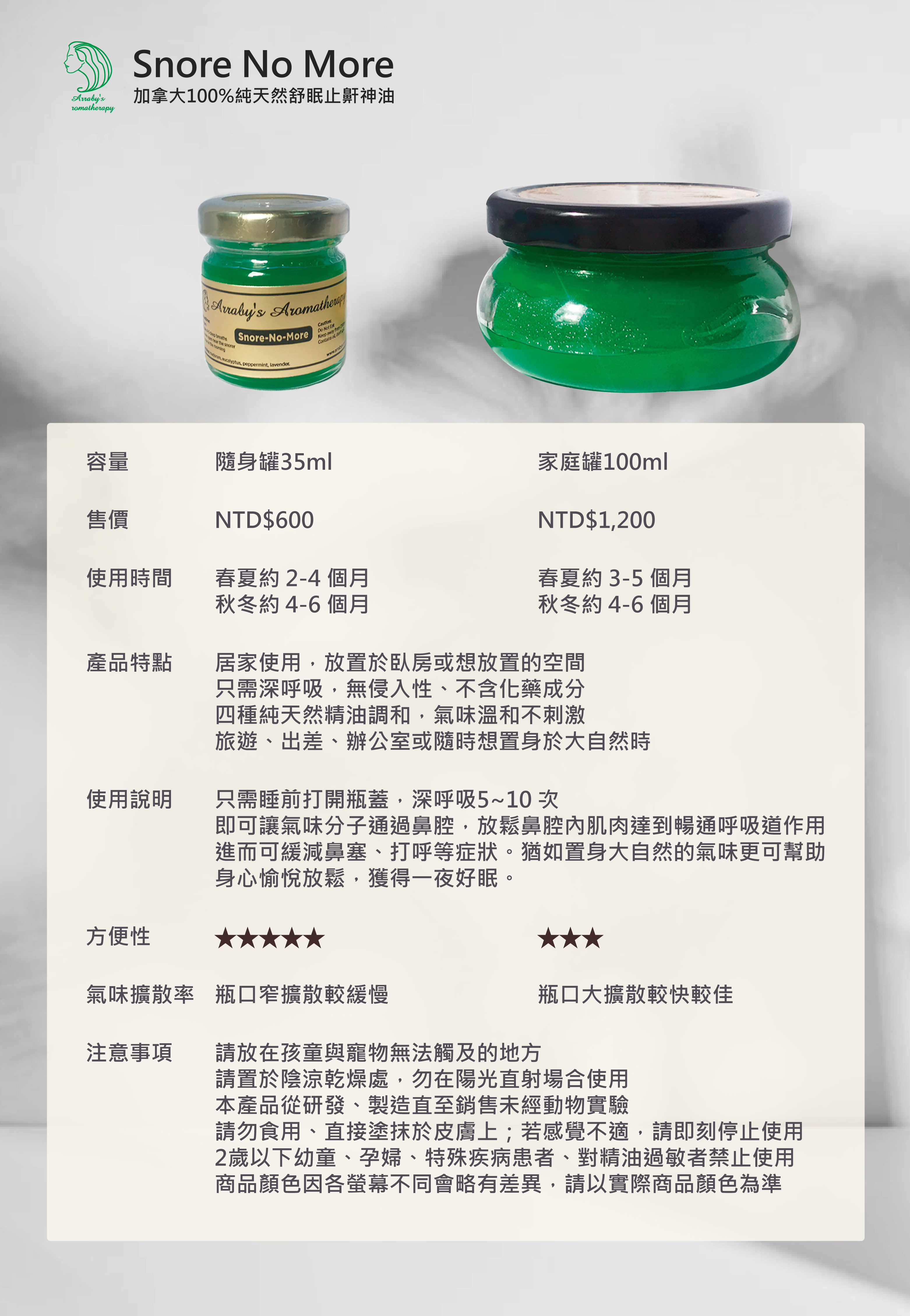 【 品 名 】 Snore No More 100% 純天然止鼾助眠神油